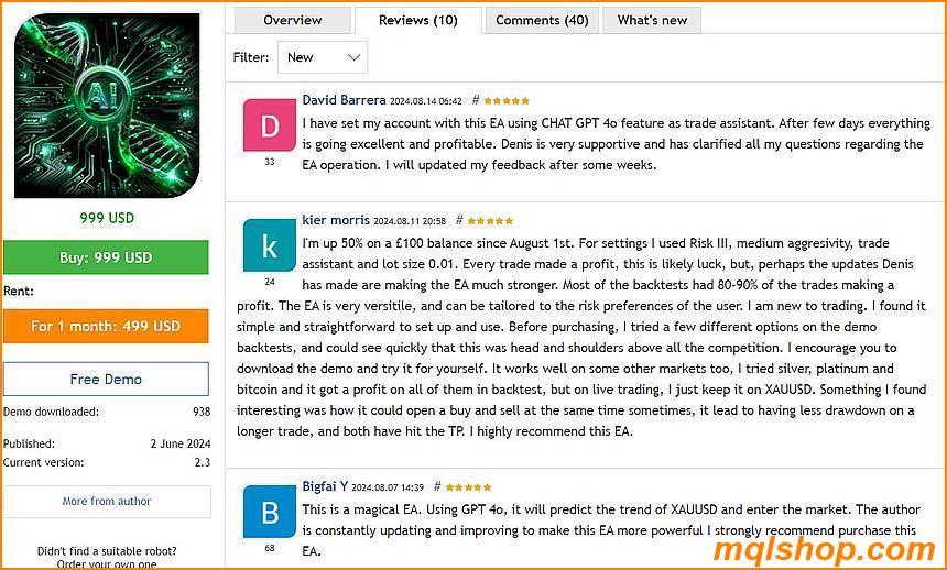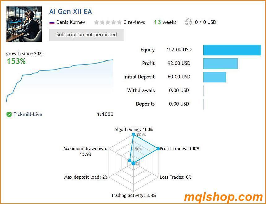 AI Gen XII EA is a powerful and reliable forex EA that combines modern AI technology with real-time data analysis, helping users achieve the best trading results. This product not only delivers high profits but is also easy to use, making it suitable for both beginners and professional traders. User feedback highlights high satisfaction with the EA’s features and performance, especially with the GPT-4o trading assistant feature. Overall, EA is a valuable choice for any trader looking to optimize their trading results.