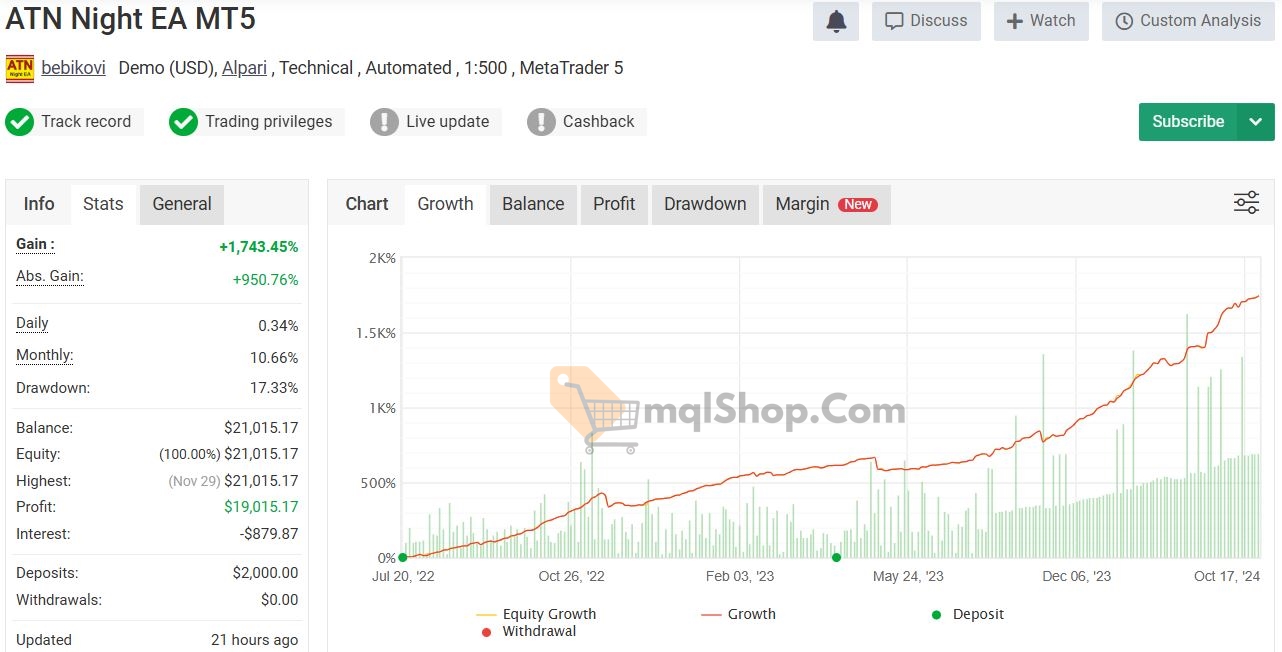 AlgoTradingNight EA is a professional automated trading Expert Advisor, optimized for USDCHF, EURUSD, GBPUSD, and other pairs, delivering high profits with low risk.