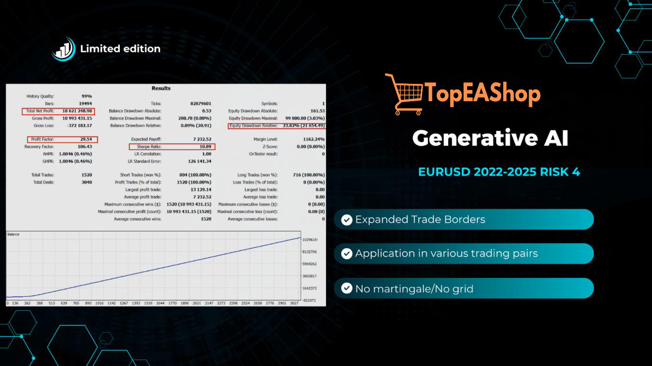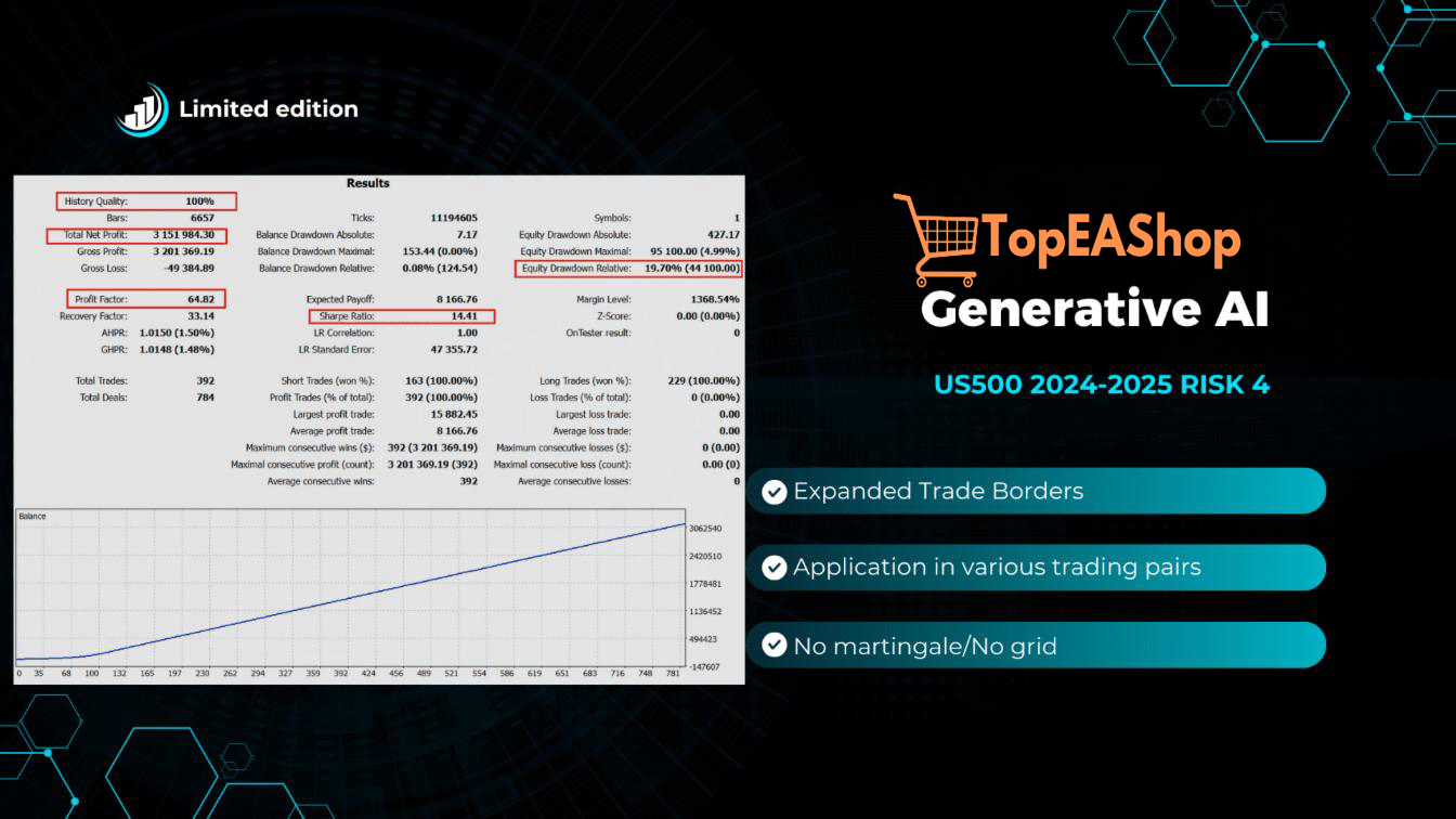 AlphaFlow EA is a sophisticated algorithmic trading system for MT4 that trades XAUUSD, EURUSD, and SP500 without martingale/grid risks. Features 200% profit growth, 64.82 profit factor, and advanced pattern recognition with minimal 19.70% drawdown.