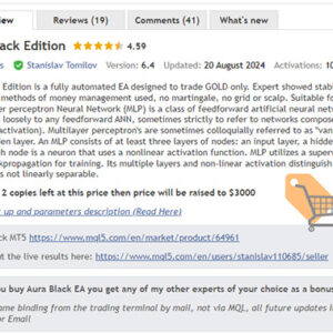 Aura Black Edition EA is a sophisticated Expert Advisor (EA) optimized for use on the Meta Trader 4 (MT4) platform designed exclusively for trading GOLD (XAUUSD). It leverages a multilayer perceptron Neural Network (MLP) to analyze and execute trades, ensuring decisions are based on robust, data-driven insights. This EA is particularly beneficial for forex traders, especially beginners, who seek to navigate the complexities of gold trading with a reliable, automated system. A core pain point for beginners is the overwhelming nature of the forex market; Aura Black Edition EA addresses this by providing a straightforward, automated solution that requires minimal manual intervention.