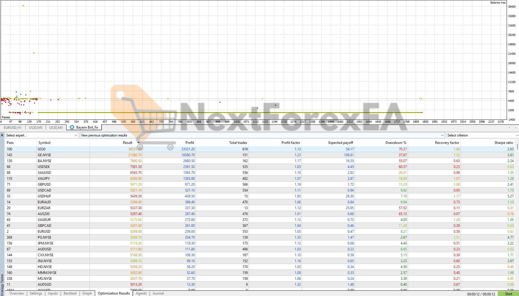 • Documented Results: US30 optimization showing 38,331 result with 1.13 profit factor, GE.NYSE generating 21,580 with 1.23 profit factor, XAUUSD specialized performance – Risk Reality: Maximum drawdowns 37-70%, EURUSD extreme 72% drawdown, sensitivity to market regime changes