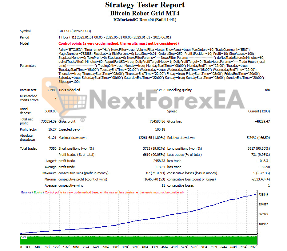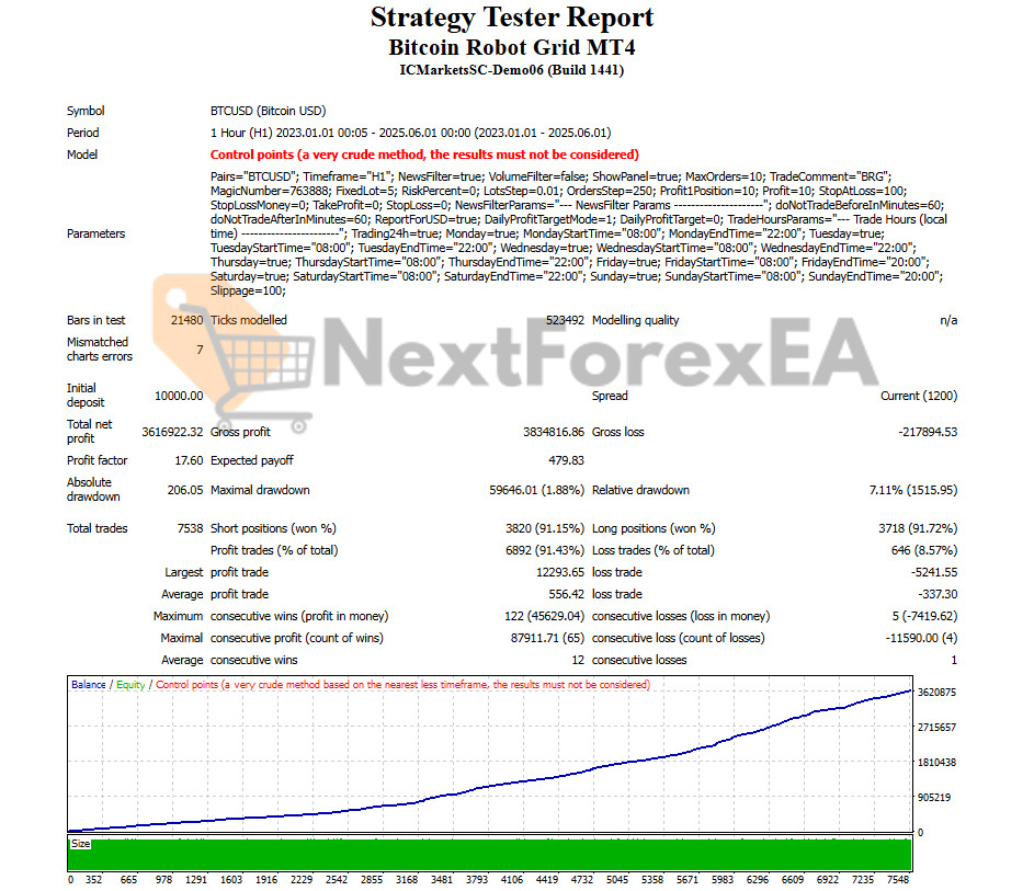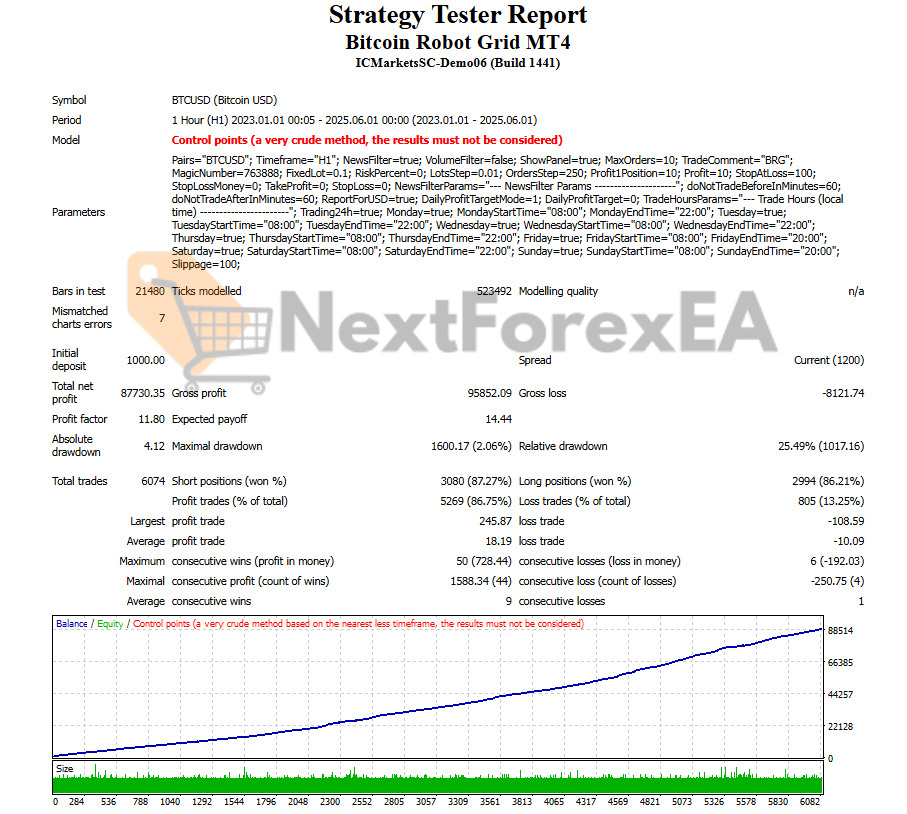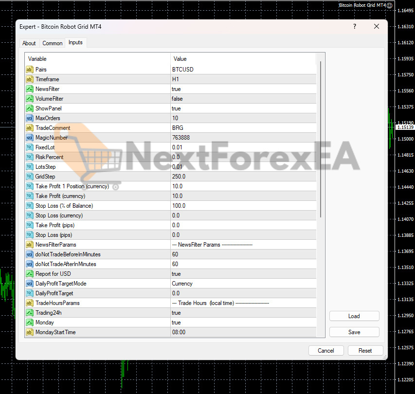 Bitcoin Robot Grid EA MT4 automates BTCUSD trading using a specialized grid methodology with integrated news filtering and risk management controls designed for Bitcoin’s unique volatility characteristics. This EA operates exclusively on H1 timeframes with 24/7 market coverage and requires only three core parameter adjustments for basic setup.