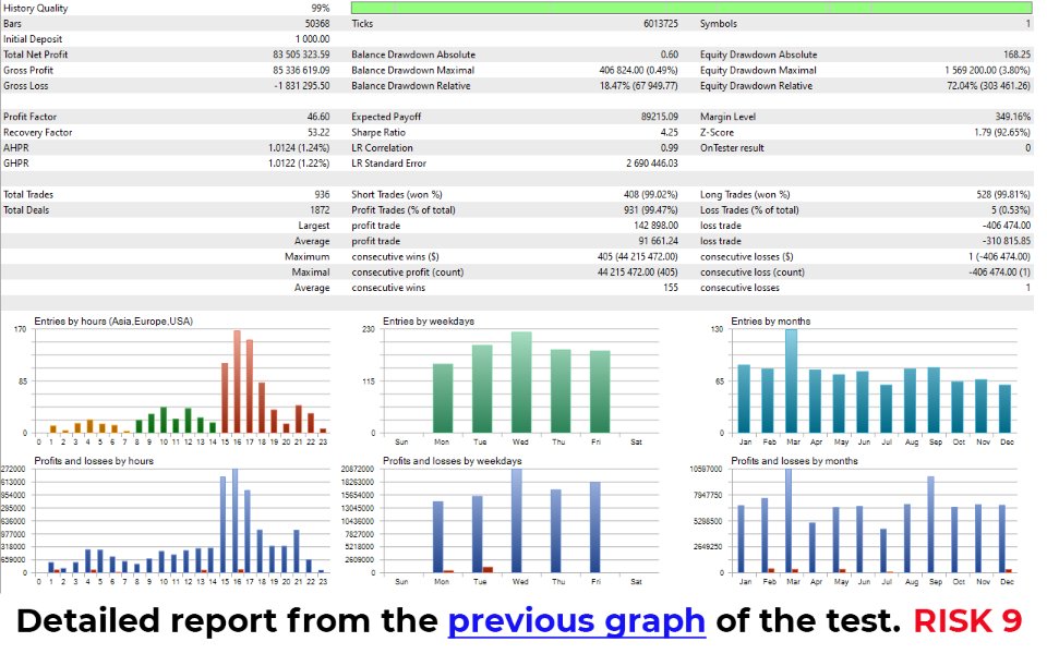 - Real trading performance: The EA maintained steady profits on XAUUSD over 4 years with a risk level of 9.
