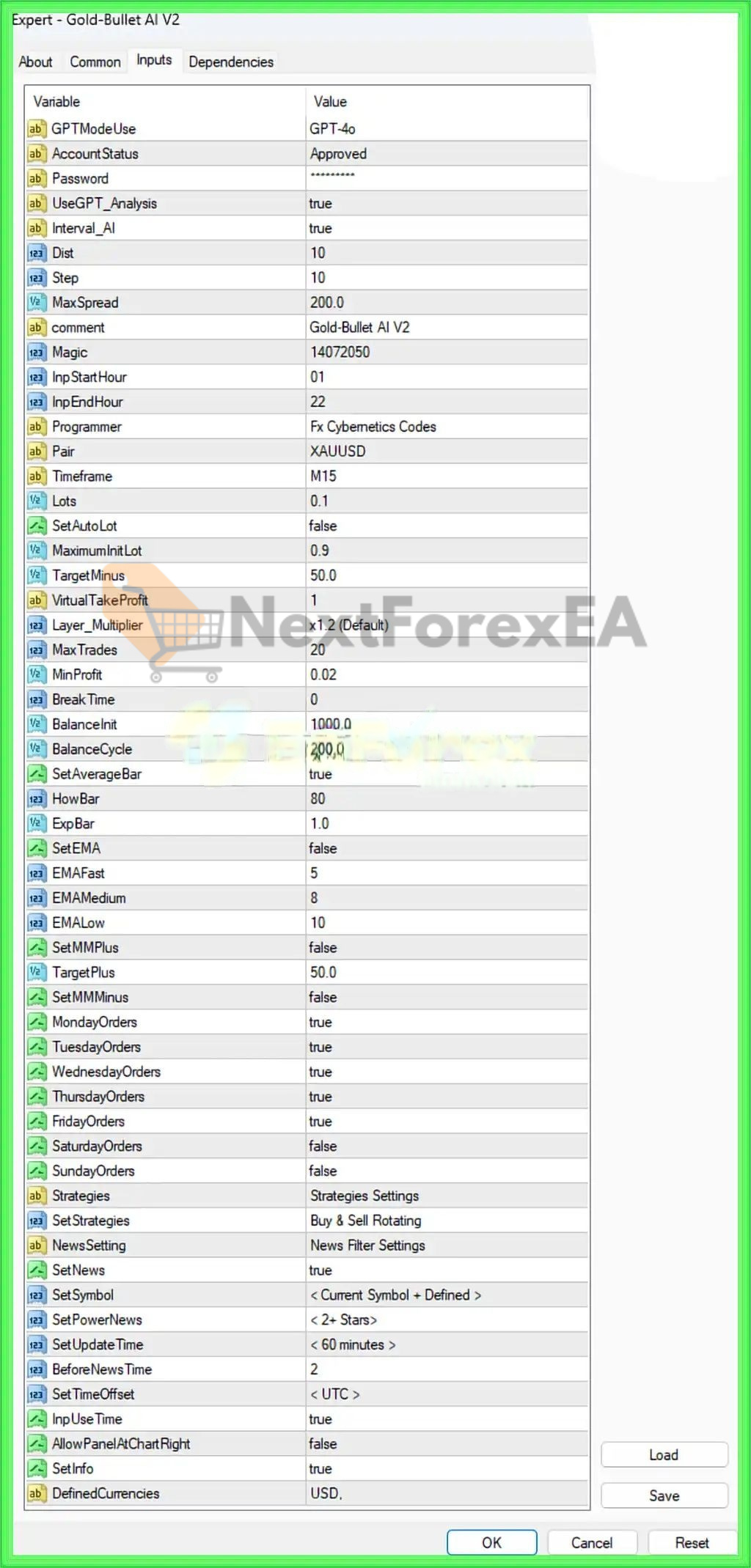 • Pairs: XAUUSD only – all optimization and logic specifically calibrated for Gold market behavior and pricing dynamics