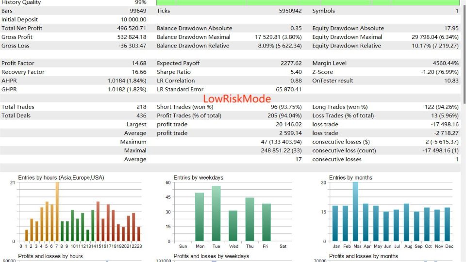 - Risk Management: Offers adjustable risk settings to match the trader’s comfort level, from low to medium, ensuring control over potential losses.