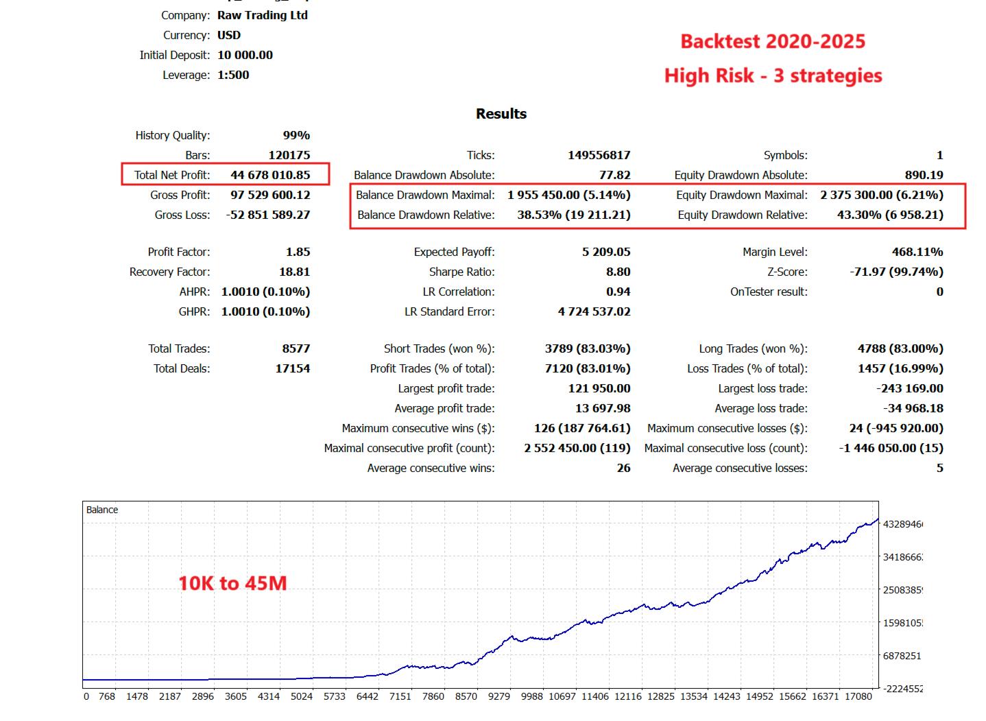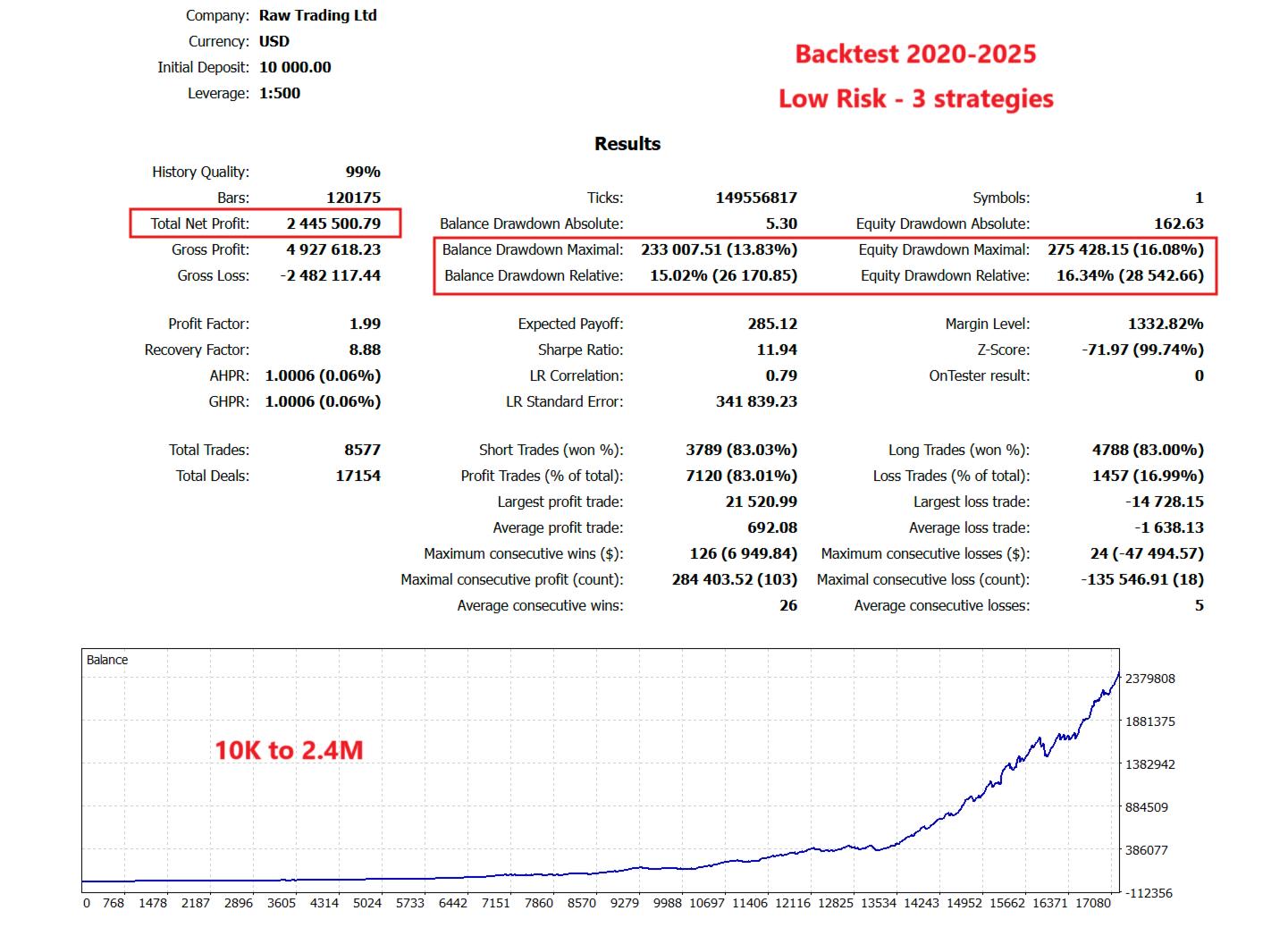 - The Gold ISIS EA showcases significant profitability, illustrated by a total net profit of $33.5 million from an initial $10,000 deposit in a recent backtest. This remarkable growth proves the effectiveness of its strategies over a tested period while maintaining an 83% success rate in trading executions. The trading strategy revolves around three independent strategies, each capable of opening up to three trades simultaneously on the M15 timeframe, thereby enhancing its profitability potential.