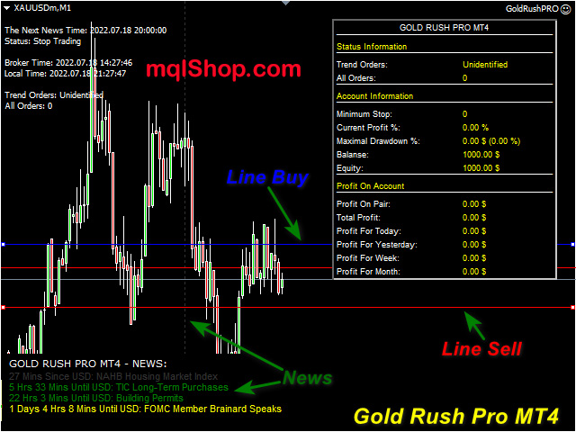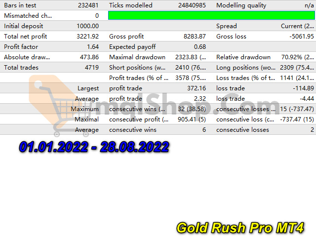 Gold Rush Pro EA is an Expert Advisor (EA) designed specifically for forex trading on the Meta Trader 4 platform, targeting gold (XAUUSD) pairs. It stands out for beginners in forex trading by addressing a common pain point: the complexity and risk of trading in volatile markets. Gold Rush Pro EA simplifies this process through automated, strategic trading, making it less daunting for newcomers to navigate the Forex market.