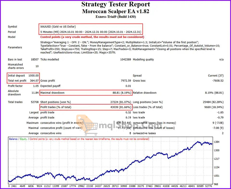 Moroccan Scalper EA is a powerful Expert Advisor specifically designed for scalping strategies on the MetaTrader 4 (MT4) platform. This EA stands out by leveraging indicators like RSI, MFI, and EMA to analyze market trends and execute precise trades. It operates on small timeframes (M1, M5), allowing traders to capitalize on price fluctuations efficiently. With an impressive 400% profit growth from an initial $1,000 in just 2 months and a 95% success rate, Moroccan Scalper EA is the ideal solution to enhance trading performance quickly.