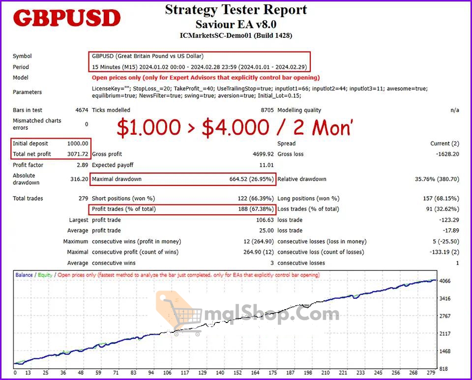 Saviour EA is a professional forex EA for MT4, utilizing grid strategy and combining Pivot, Price Channel, and Price Action indicators for high profits.
