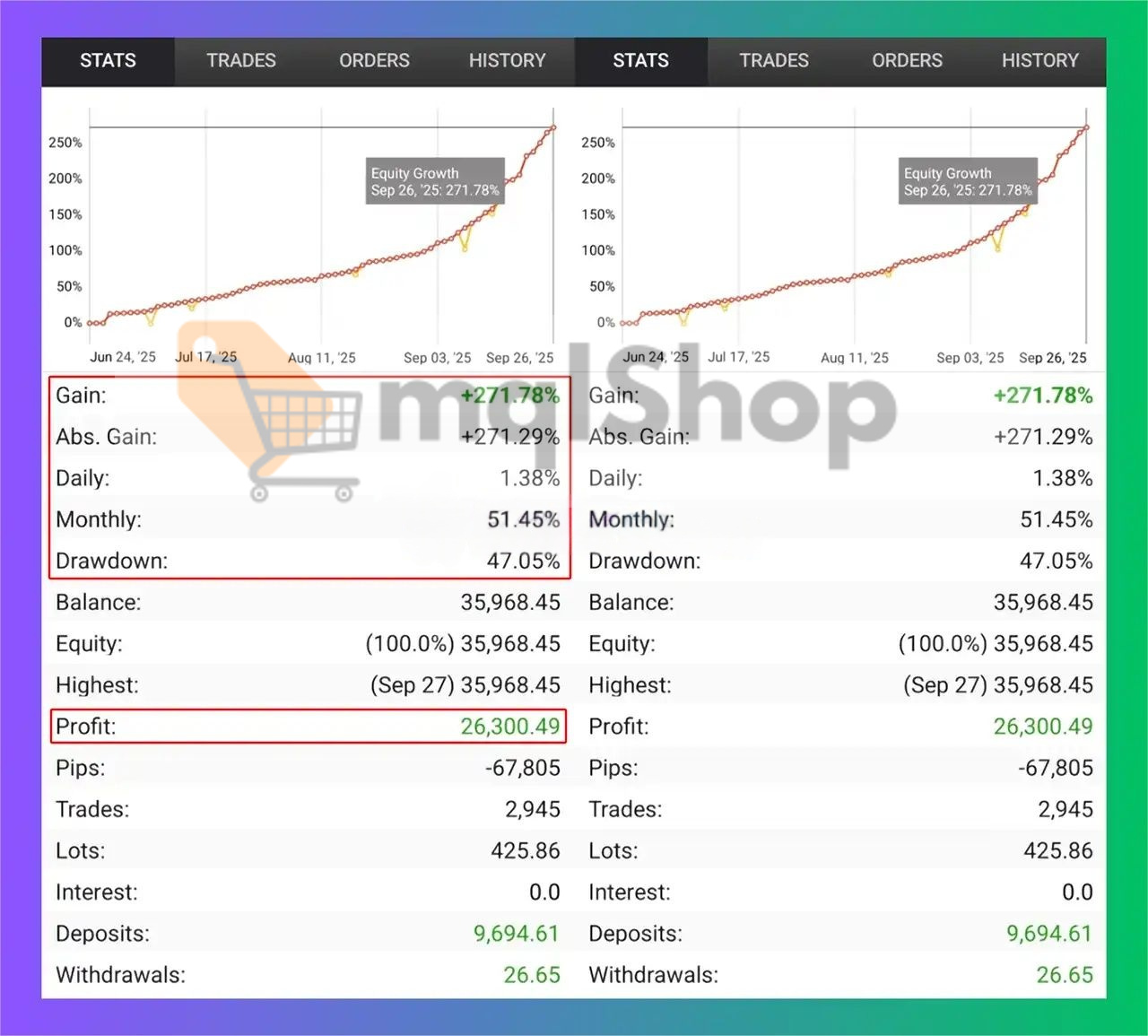 | Account Growth | $9,694.61 → $35,968.45 |